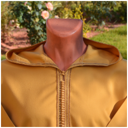 Une jellaba moderne composée de deux pièces, offrant un style traditionnel revisité avec confort et praticité.
