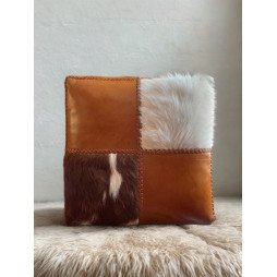 Cette élégante boîte de rangement est une création unique de Belkhir Cuir, réalisée en cuir véritable cousu main et ornée de carrés de peau naturelle. Son design géométrique en patchwork lui confère un style chaleureux, à la fois rustique et raffiné. Idéale pour la décoration intérieure ou le rangement chic de vos objets précieux.