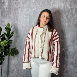 Cette veste traditionnelle moderne allie avec élégance authenticité artisanale et style contemporain. Ses broderies raffinées, sublimées par des franges décoratives, apportent une touche de caractère et de sophistication à chaque tenue. Conçue dans des tons rouge et noir intenses, elle se distingue par son fort impact visuel et ses finitions soignées, idéales pour les occasions spéciales, les événements culturels ou pour affirmer un style unique au quotidien. Une pièce forte qui incarne le chic intemporel et l’originalité.
